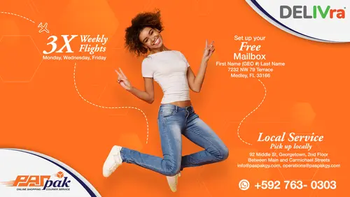 Your items arrive at our Miami warehouse, and we ship them to Guyana